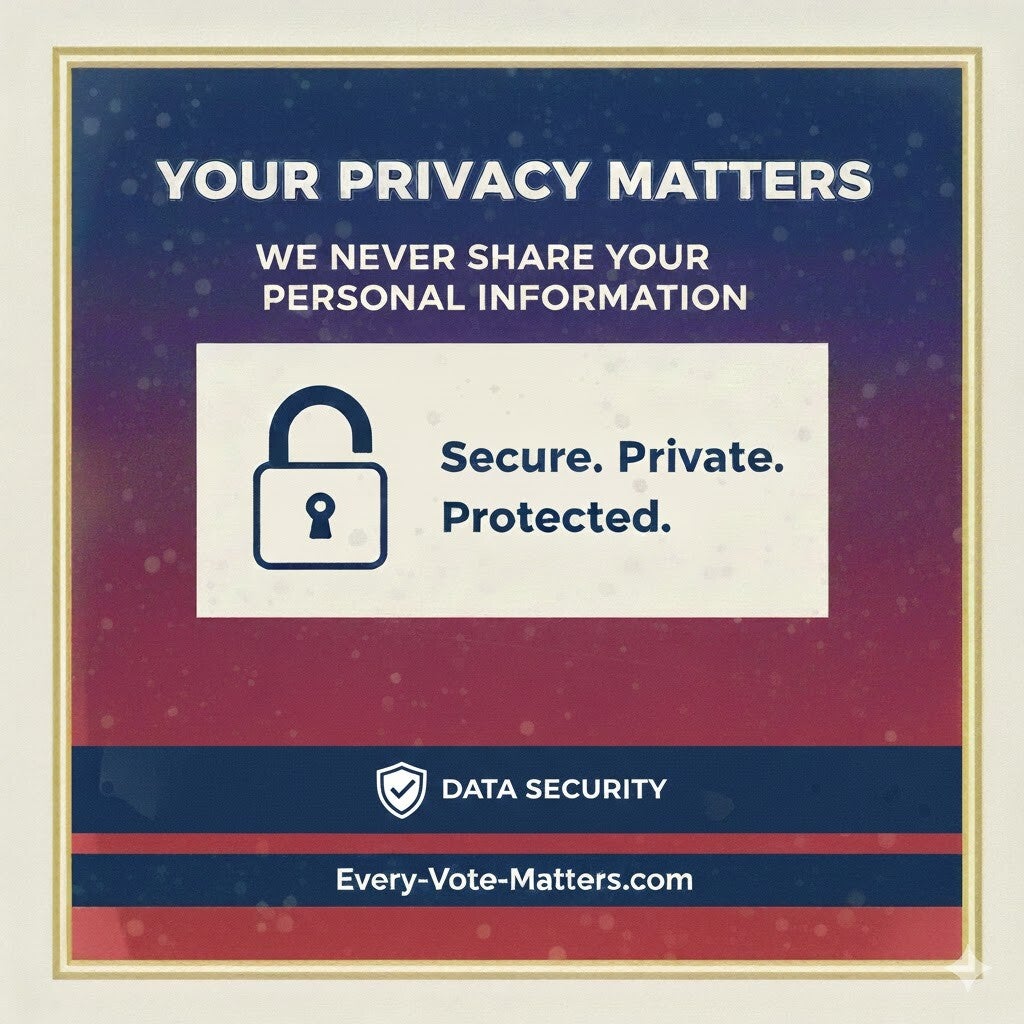 Worried about sharing your information? At Every Vote Matters, we understand. That's why we want to assure you that we never share your personal information with anyone. Your privacy is our priority!